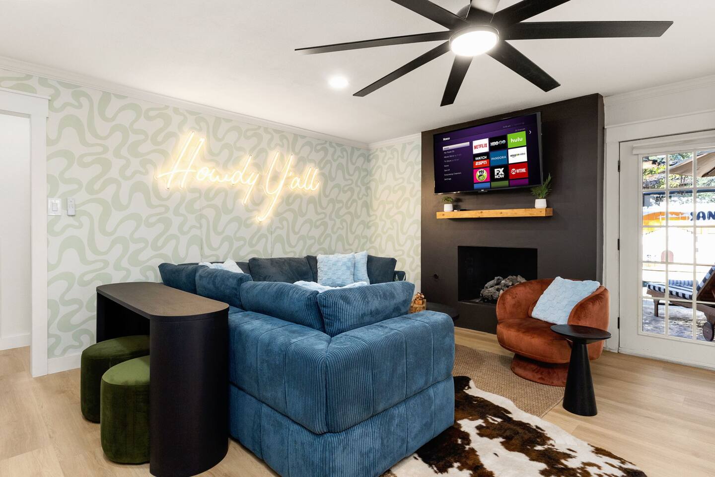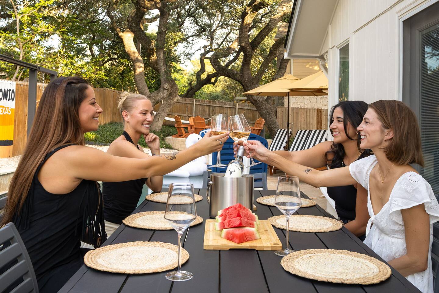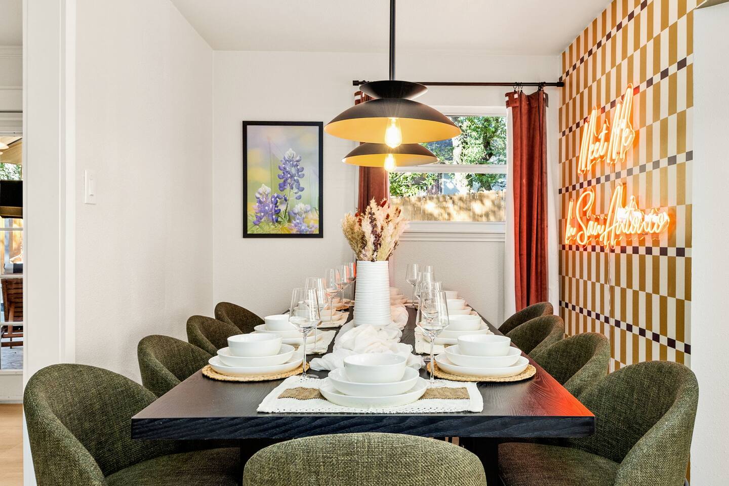 ๐ Welcome to your San Antonio getaway โ designed for families and groups who want to truly unwind and have a blast doing it. From movie marathon nights to lazy pool days, there's genuinely something here for everyone in your group. ๐ Features You Canโt Miss: ๐ฌ Movie Room โ 6 recliner chairs, 85" SmartTV & popcorn machine ๐ค Game Room โ karaoke, disco balls, arcade games, pool & poker tables ๐ Outdoor Oasis โ heated pool, hot tub, fire pit, hammock, projector, & lawn games ๐ 6 Bedrooms / 3.5 Bathrooms โ sleeps 18 comfortably with SmartTVs ๐ผ Family-Friendly Amenities โ Pack โn Play, high chair, board games, kidsโ activities ๐พ Pet-Friendly โ bring up to 2 dogs (see details below) ๐ McAllister Park (7 min) ๐ San Antonio Zoo (15 min) ๐ San Antonio River Walk (20 min) ๐ The Alamo (20 min) ๐ San Antonio Museum of Art (20 min) ๐ Six Flags Fiesta Texas (22 min) ๐ Living & Dining The open-concept living room features a 65โ SmartTV, plush seating, and a stylish bar area complete with bar cart, whiskey glasses, martini glasses & a cocktail shaker โ the perfect setup for group gatherings. The fully equipped kitchen makes mealtime a breeze, with modern appliances, plenty of cookware, and a Cuisinart Single-Serve Coffee Maker. The large dining table provides room for the whole group to enjoy meals together. ๐ Where Youโll Sleep: โข Bedroom 1 (Main Floor): King Bed, ensuite full bath, 65" SmartTV & workspace โข Bedroom 2: King Bed, 65" SmartTV โข Bedroom 3: King Bed, 65" SmartTV โข Bedroom 4: 2 Queen Beds โข Bedroom 5: 2 Full Beds, 65" SmartTV โข Bedroom 6: 2 Full-over-Full Bunk Beds (the kids will fight over who gets to sleep here!) ๐ฌ Movie & Game Rooms โคMovie Room: 6 plush armchairs, an 85" SmartTV that'll make you feel like you're at the theater, and fresh popcorn from our machine. Movie night just got an upgrade! โคGame Room: Karaoke setup for those brave enough to belt out their favorites, disco balls for instant party vibes, 65" SmartTV, pool table for the competitive folks, poker table for serious games, plus classic arcades like NBA Jam and Golden Tee 3D. ๐ด Outdoor Fun โข Heated pool & hot tub (we can heat the pool for you at $35/day โ totally worth it!) โข Outdoor movie projector because poolside movies just hit different ๐ฅ โข Stainless steel propane grill and outdoor dining setup for those perfect BBQ moments โข Fire pit with comfy seating โ ideal for s'mores โข So many games: cornhole, ladder toss, ping pong, pool basketball & volleyball, plus a hammock for anyone who just wants to chill with a book ๐จโ๐ฉโ๐ง Family-Friendly Perks This home was designed with families in mind! Youโll find: โข Pack โn Play & high chair โข Board games & books โข Large yard & plenty of kid-friendly activities