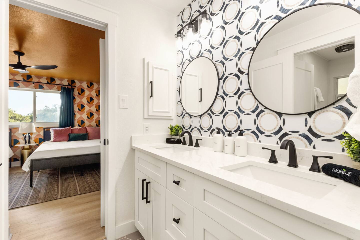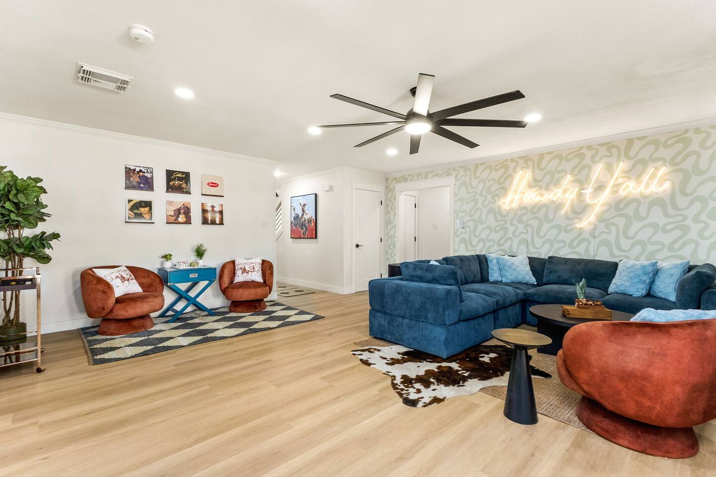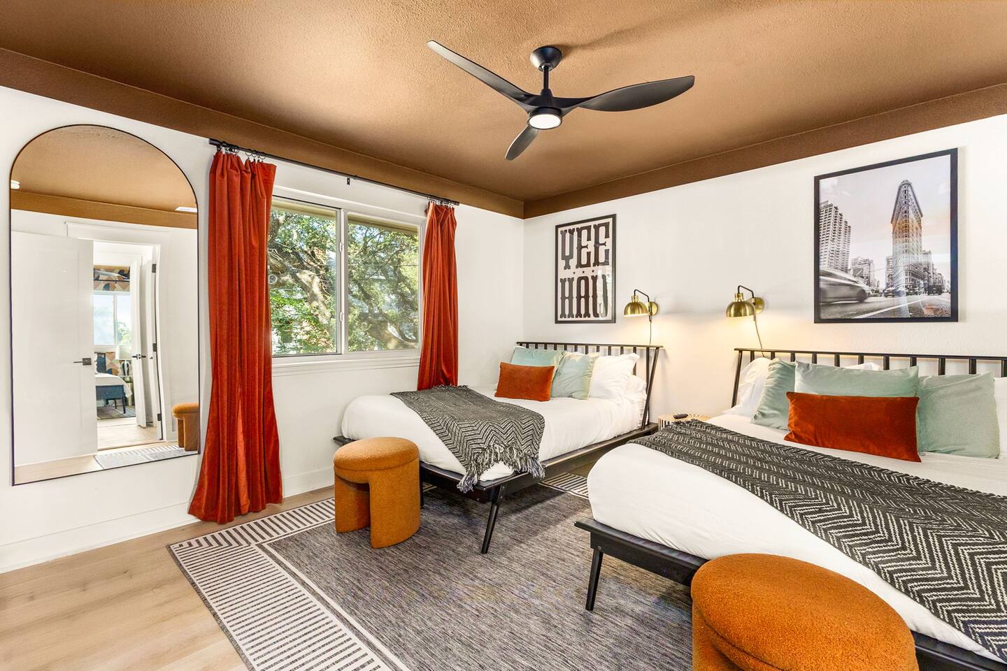 ๐ Welcome to your San Antonio getaway โ designed for families and groups who want to truly unwind and have a blast doing it. From movie marathon nights to lazy pool days, there's genuinely something here for everyone in your group. ๐ Features You Canโt Miss: ๐ฌ Movie Room โ 6 recliner chairs, 85" SmartTV & popcorn machine ๐ค Game Room โ karaoke, disco balls, arcade games, pool & poker tables ๐ Outdoor Oasis โ heated pool, hot tub, fire pit, hammock, projector, & lawn games ๐ 6 Bedrooms / 3.5 Bathrooms โ sleeps 18 comfortably with SmartTVs ๐ผ Family-Friendly Amenities โ Pack โn Play, high chair, board games, kidsโ activities ๐พ Pet-Friendly โ bring up to 2 dogs (see details below) ๐ McAllister Park (7 min) ๐ San Antonio Zoo (15 min) ๐ San Antonio River Walk (20 min) ๐ The Alamo (20 min) ๐ San Antonio Museum of Art (20 min) ๐ Six Flags Fiesta Texas (22 min) ๐ Living & Dining The open-concept living room features a 65โ SmartTV, plush seating, and a stylish bar area complete with bar cart, whiskey glasses, martini glasses & a cocktail shaker โ the perfect setup for group gatherings. The fully equipped kitchen makes mealtime a breeze, with modern appliances, plenty of cookware, and a Cuisinart Single-Serve Coffee Maker. The large dining table provides room for the whole group to enjoy meals together. ๐ Where Youโll Sleep: โข Bedroom 1 (Main Floor): King Bed, ensuite full bath, 65" SmartTV & workspace โข Bedroom 2: King Bed, 65" SmartTV โข Bedroom 3: King Bed, 65" SmartTV โข Bedroom 4: 2 Queen Beds โข Bedroom 5: 2 Full Beds, 65" SmartTV โข Bedroom 6: 2 Full-over-Full Bunk Beds (the kids will fight over who gets to sleep here!) ๐ฌ Movie & Game Rooms โคMovie Room: 6 plush armchairs, an 85" SmartTV that'll make you feel like you're at the theater, and fresh popcorn from our machine. Movie night just got an upgrade! โคGame Room: Karaoke setup for those brave enough to belt out their favorites, disco balls for instant party vibes, 65" SmartTV, pool table for the competitive folks, poker table for serious games, plus classic arcades like NBA Jam and Golden Tee 3D. ๐ด Outdoor Fun โข Heated pool & hot tub (we can heat the pool for you at $35/day โ totally worth it!) โข Outdoor movie projector because poolside movies just hit different ๐ฅ โข Stainless steel propane grill and outdoor dining setup for those perfect BBQ moments โข Fire pit with comfy seating โ ideal for s'mores โข So many games: cornhole, ladder toss, ping pong, pool basketball & volleyball, plus a hammock for anyone who just wants to chill with a book ๐จโ๐ฉโ๐ง Family-Friendly Perks This home was designed with families in mind! Youโll find: โข Pack โn Play & high chair โข Board games & books โข Large yard & plenty of kid-friendly activities