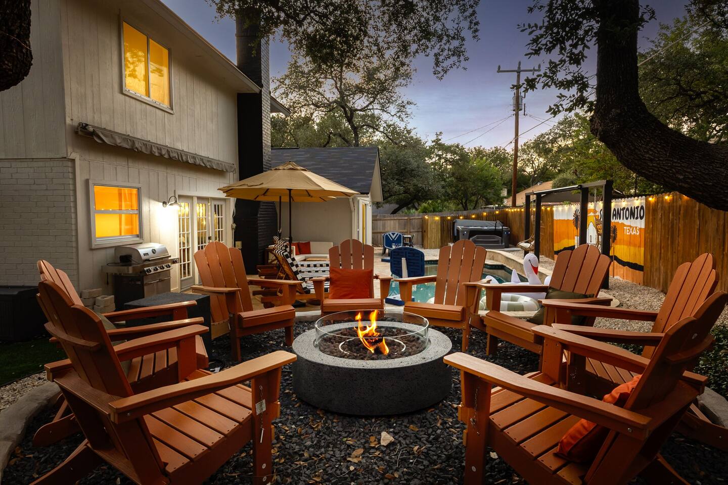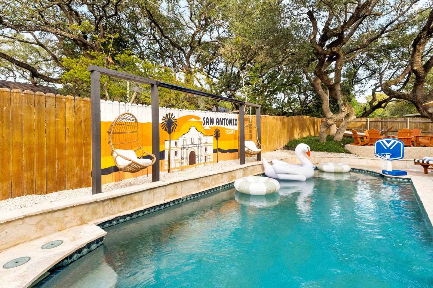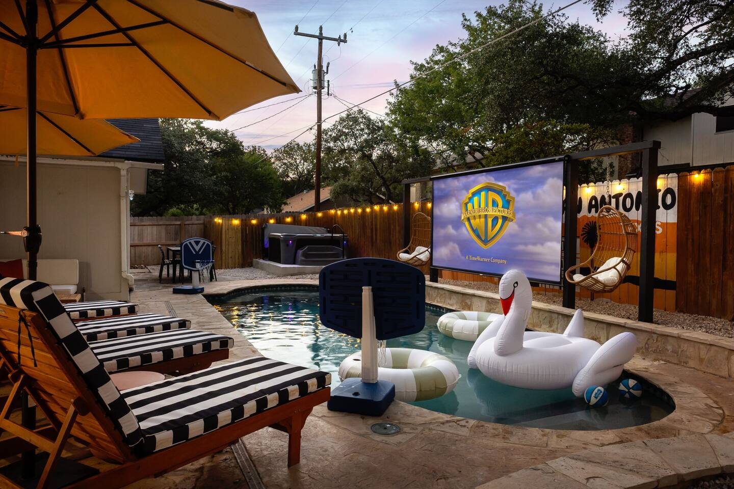 Welcome to Alamo City Hideout! Our centrally located family-friendly retreat in beautiful San Antonioโ๏ธblending cozy comfort and non-stop fun. ๐ Private Heated Pool ๐ Hot Tub ๐ฅ 150" Outdoor Movie Screen ๐ฌ Movie Theater ๐ฎ Arcade Games ๐ฑ Pool Table ๐ฅ Fire Pit ๐ Outdoor Ping Pong ๐ BBQ Grill ๐ฝ Cornhole ๐๏ธ Sleeps 18 ๐ด Chef-Ready Kitchen- Well-Equipped with Modern Appliances ๐ผ Kid Friendly- Pack-N-Play, High Chair, Baby Gate ๐พ Pet-Friendly- Dog Bed, Dog Bowls โ๏ธ Coffee Bar